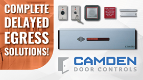 | | Advertisement | | | | Camden brings to market the most trusted Delayed Egress Maglocks in the industry and supports them with a complete range of mounting & system accessories to meet the requirements of any installation application. These span reset key switches, remote sounders, 15 W speakers with optional LEDs, signage (French, Spanish and Braille available) and mounting accessories. Application guides are available for download at www.camdencontrols.com. |