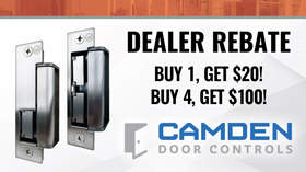 | | | | | | | | | Advertisement | | | | Camden's CX-ED1689L & CX-ED1799L electric strikes for mortise and cylindrical locksets offer the very best strike quality, with built-in latch monitoring and 'universal' performance. CX-ED1689L is a low-profile Grade 1 fire rated strike with both latch and strike monitor switches included. CX-ED1799L is a Grade 1 fire rated strike with dual lock monitors and strike monitor switches included. |